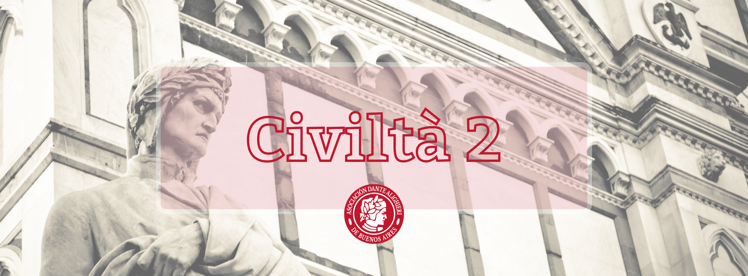 Pueden acceder a este nivel los alumnos que han completado y aprobado Civiltà 1 y aquellas personas que ya poseen conocimientos del idioma y los demuestren a través de un test de nivel o certificado de otro instituto. Este curso puede realizarse en paralelo con los de Perfezionamento della Lingua.